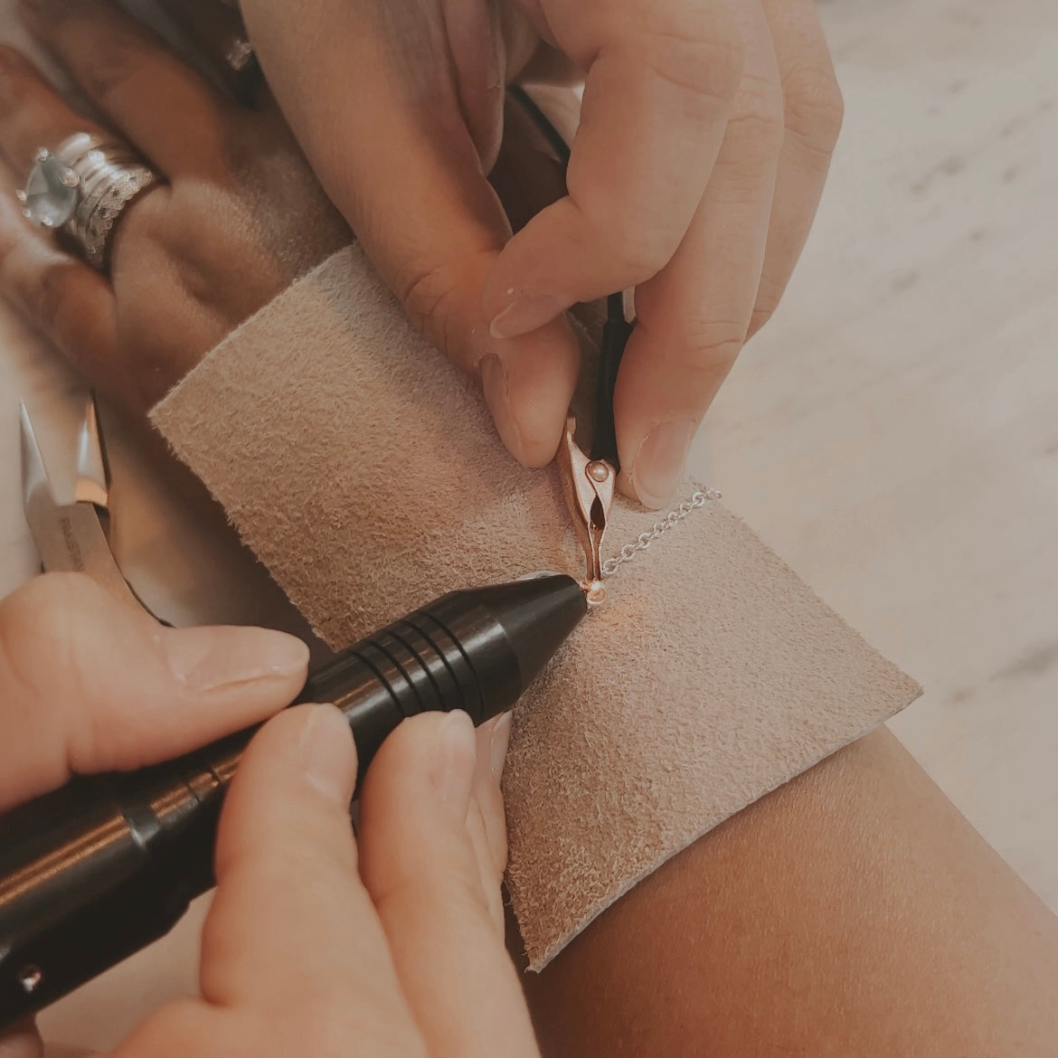 Una pieza de joyería para toda la vida, soldada directamente sobre tu muñeca o tobillo, perfecta para representar a alguien especial, un momento importante o simplemente para recordarte algo que nunca deseas olvidar.