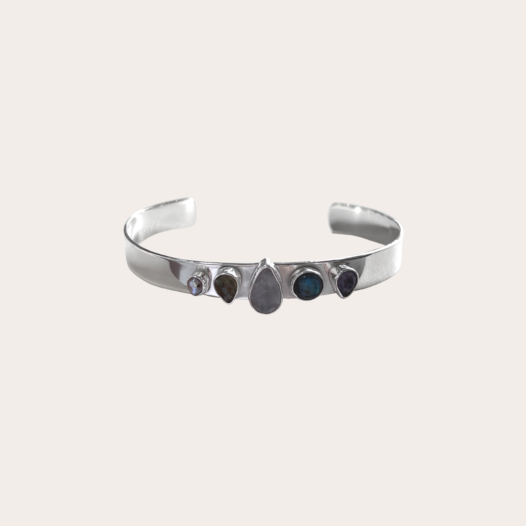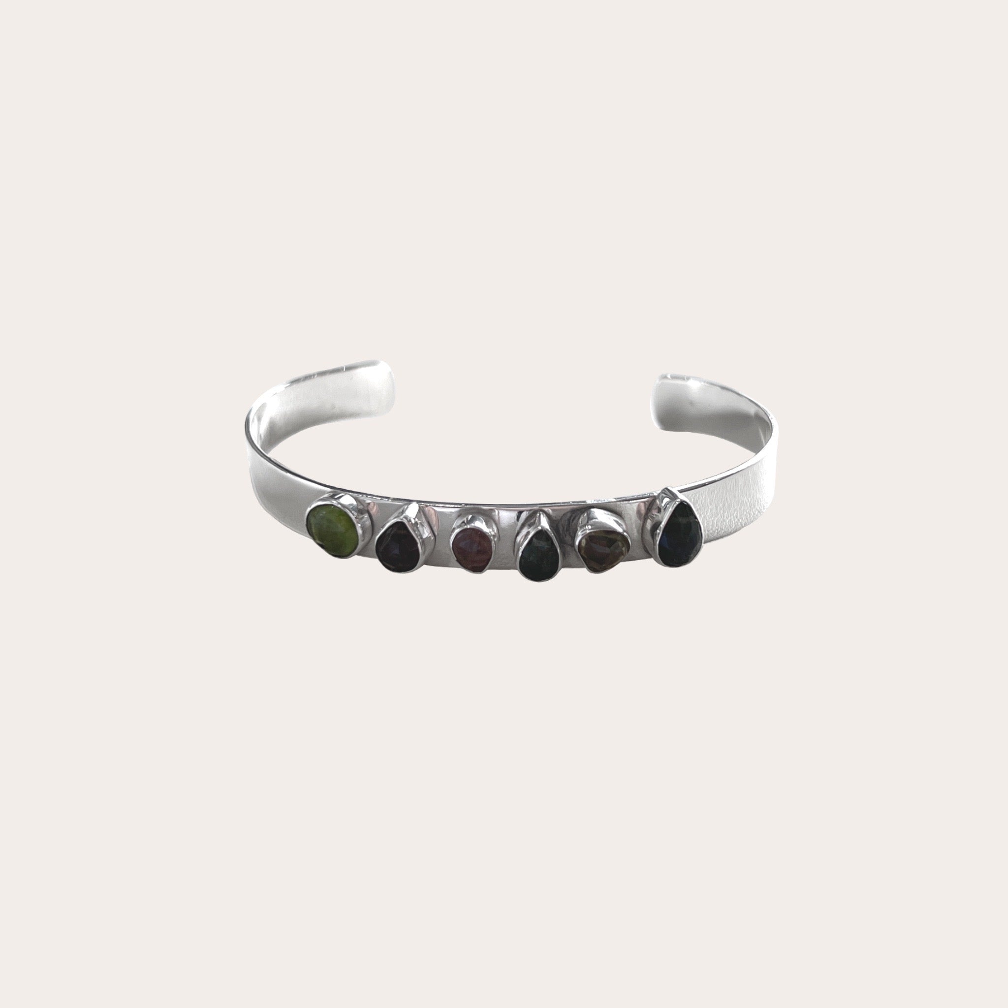 Brazalete rígido de plata.925 con piedras naturales biseladas