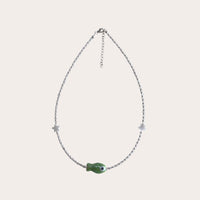 Choker con bolitas de plata, cuarzo Rosa y ágatas de colores con pez de cerámica en el centro.