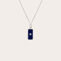 Collar de placa de piedra biselada con plata .925 y destello de plata con topacio blanco. Dimensiones de dije 20mm x 10mm, Incluye cadena de 40cm plata.