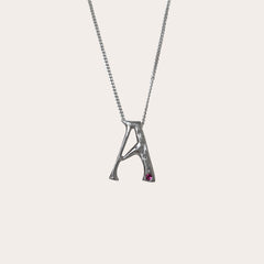 Collar de 40 cm con letra de plata y mini piedra natural turquesa o turmalina rosa de 2 mm.