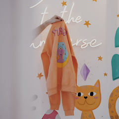 Nuestra sudadera es muy suavecita, ligera y calientita, por el frente podemos ver nuestro signo ziodiacal y por detrás la constelación, llena de estrellas como el universo.